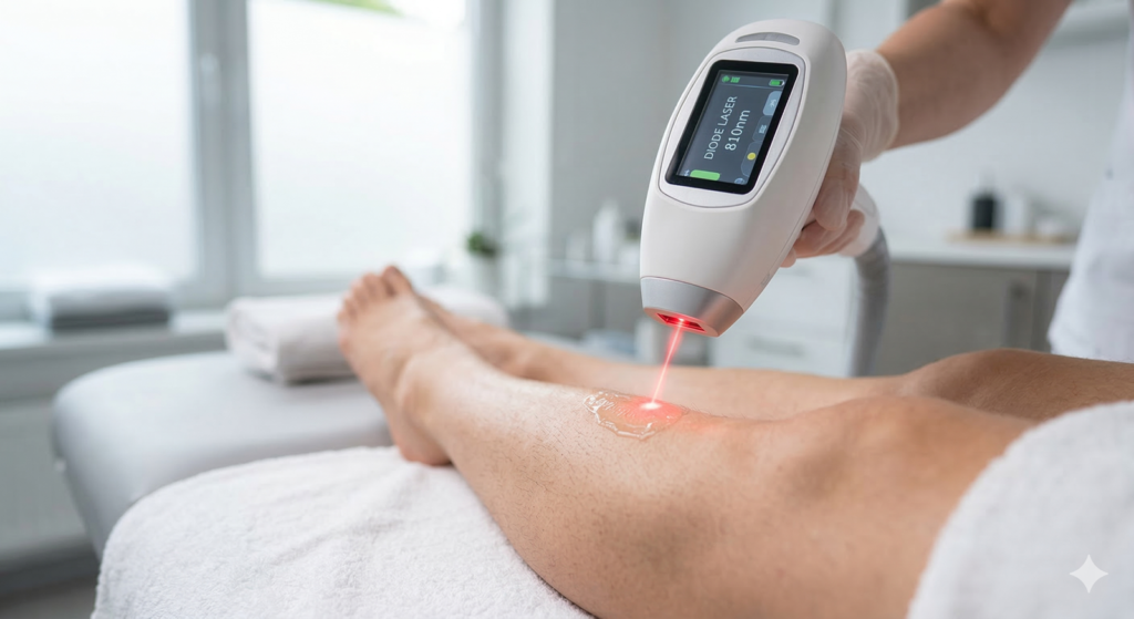 El láser diodo emite pulsos de luz que son absorbidos por la melanina del folículo piloso, destruyendo la raíz del pelo sin dañar la piel circundante. Es la tecnología más avanzada para la depilación definitiva.